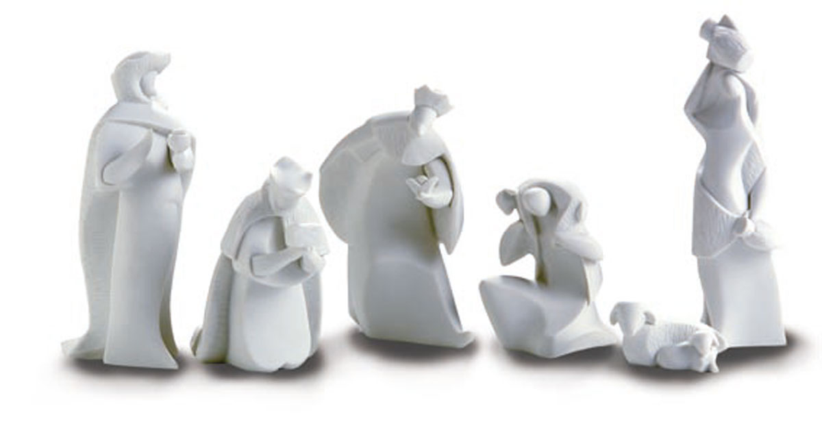 Delicate set of three wise men and shepherds of exceptional quality, hand-decorated. It consists of 6 pieces (Melchior, Gaspar, Balthazar, shepherds and sheep). Served in a box.