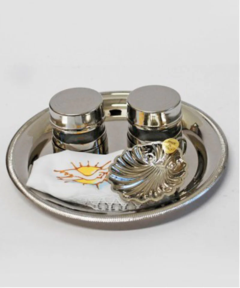 Baptism Service complete with hand-painted engravings. Silverplated or goldplated finishes.