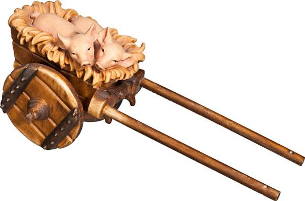 Cart with piglets of high quality in noble woods. Normally in linden, maple or oak wood. Sculpture with a perfect finish.