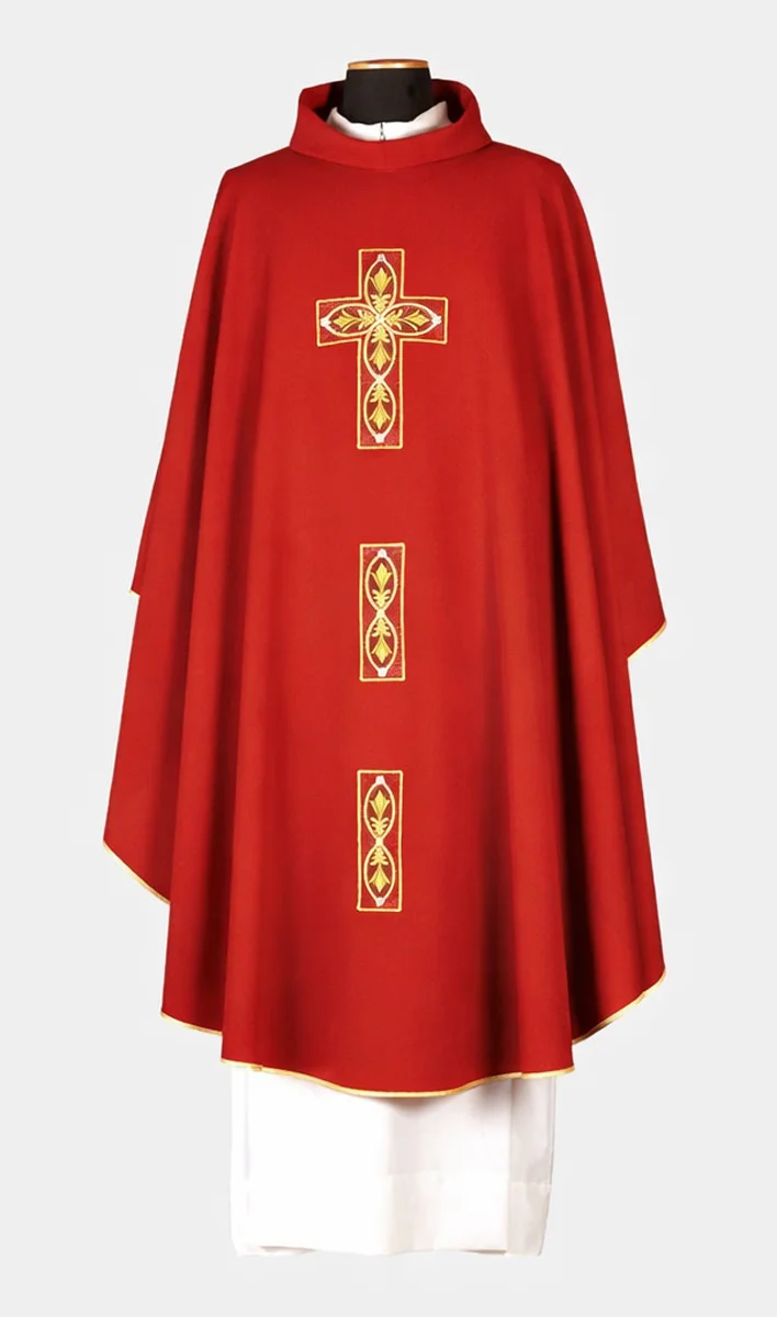 Available exclusively in red, it is appropriate for celebrations of martyrs, feasts of the Holy Spirit and liturgical solemnities proper to this color.