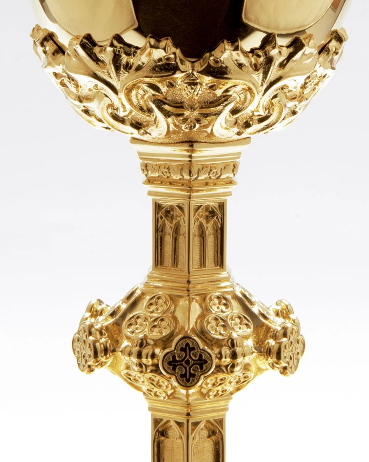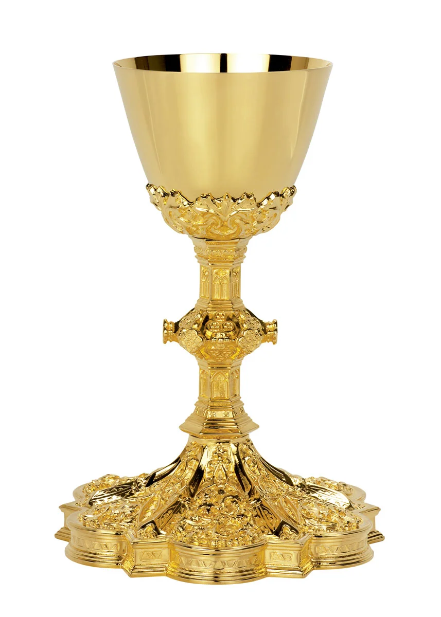 Spectacular chalice in Gothic style, handcrafted. It is possible to realize it in brass with inner cup of 925 sterling silver, or Chalice made 100% in 925 sterling silver.