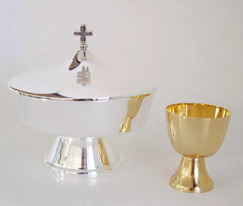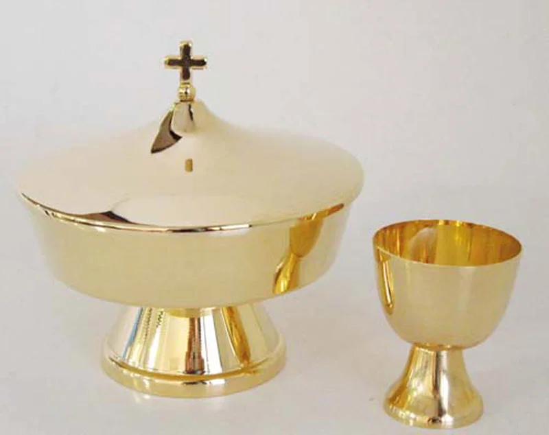 Ciborium behind the two species, golden. It contains the little calice.