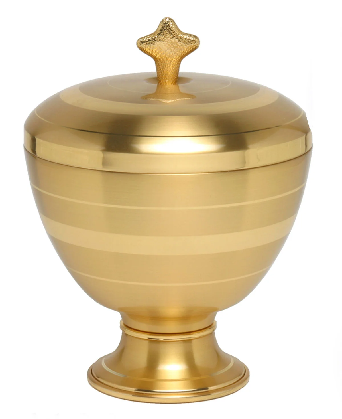 Brass ciborium-paten. Finishes available: Gold-plated or Silver-plated metal. Includes a little chalice.