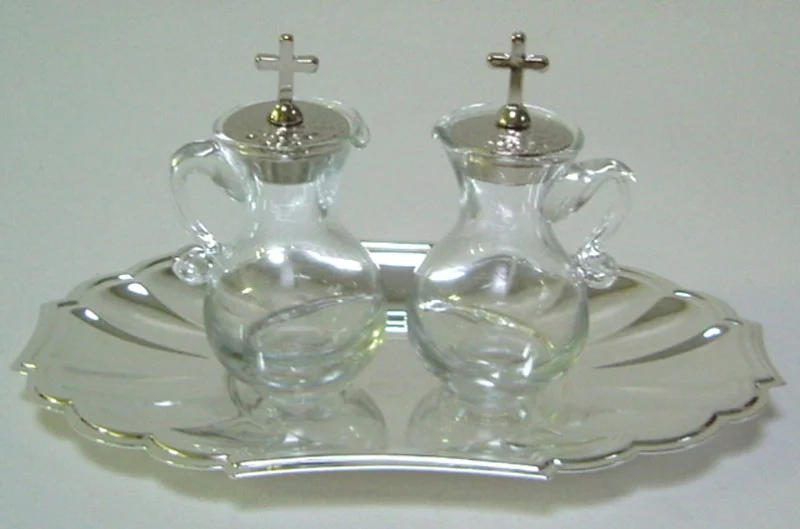 Cruet set with Parma ampoules, decorated with application of grape and wine l leaves, hand-made painted.