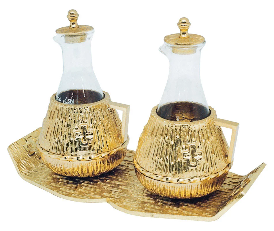 Cruet Set. Height of bottles 8.5 cm. The bottles are inserted in cylinders to avoid possible falls.. Capacity bottles 100cc.