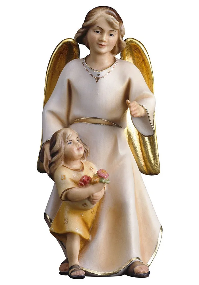 Guardian angel with girl, made of natural wood,