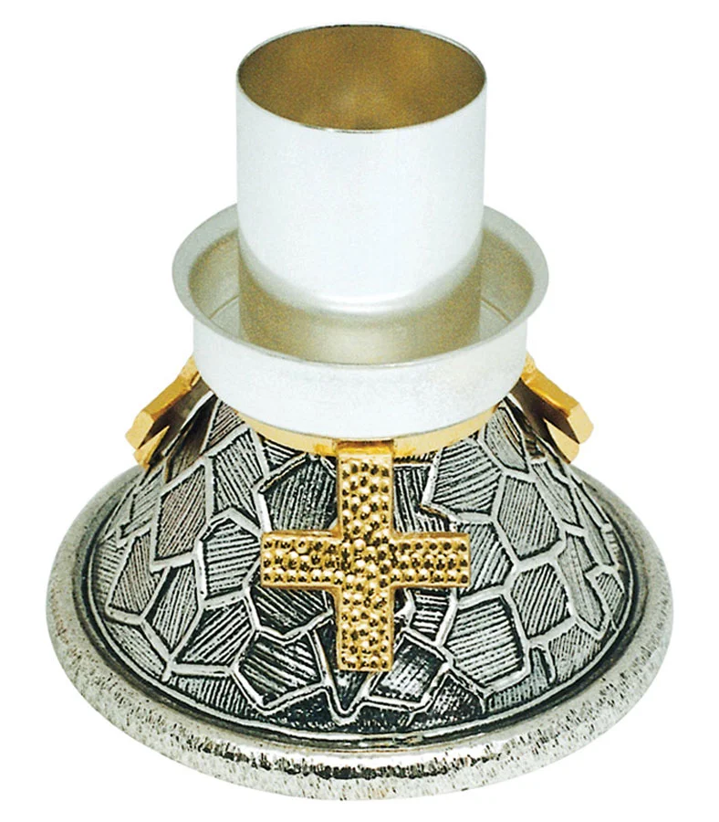 Liturgical candlestick in brass fusion, with cross motif.