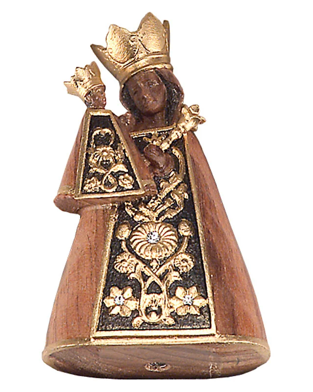 Miniature of Madonna of Altoetting in natural wood carving, available with or without gift box.