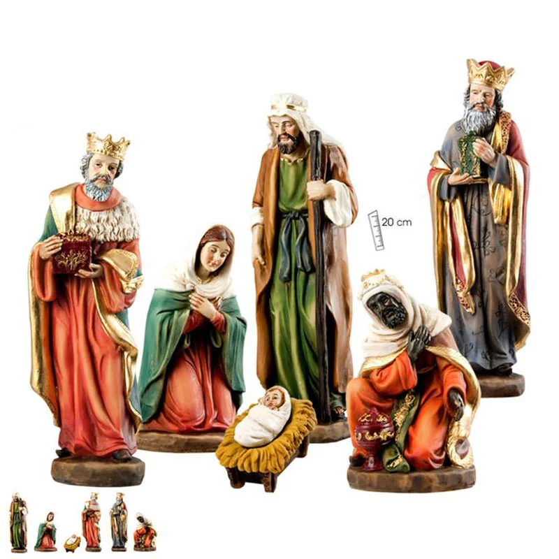 Beautiful nativity 6 pieces, made of decorated resin. Various measures available.