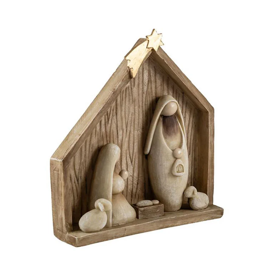 Beautiful sculpture of the nativity with nativity scene, made of decorated resin.