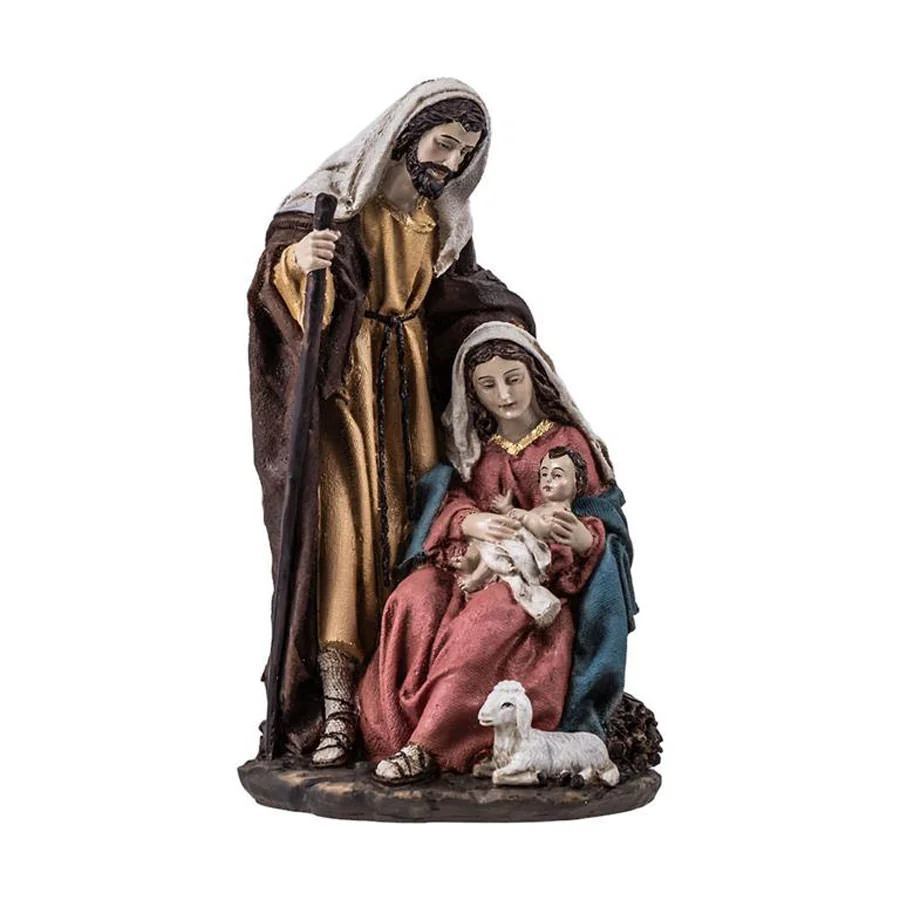 Beautiful sculpture of the nativity with sheep, made of decorated resin.