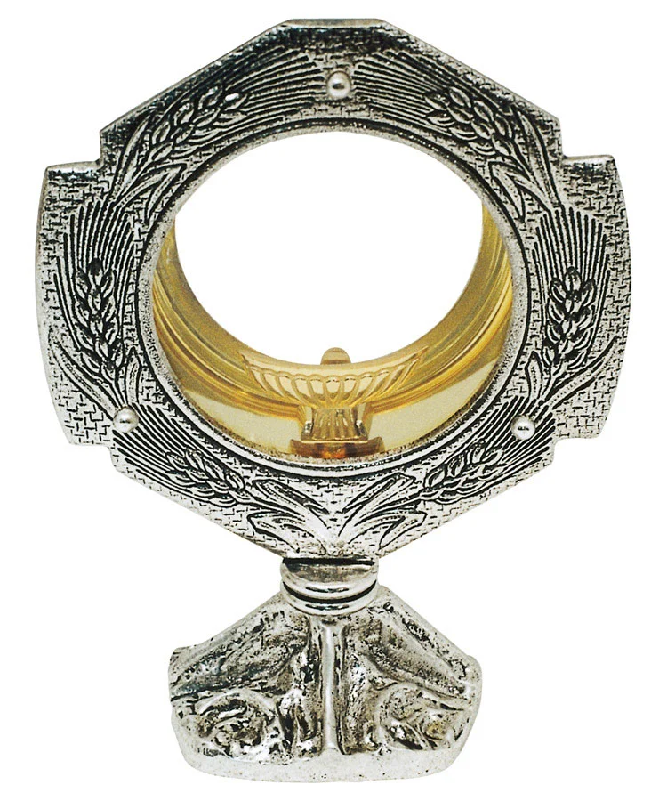 Spectacular eucharistic ostensorium brass fusion with spike motif of a quality and exceptional finishes. The inner diameter of the virile is 9.5 cm.