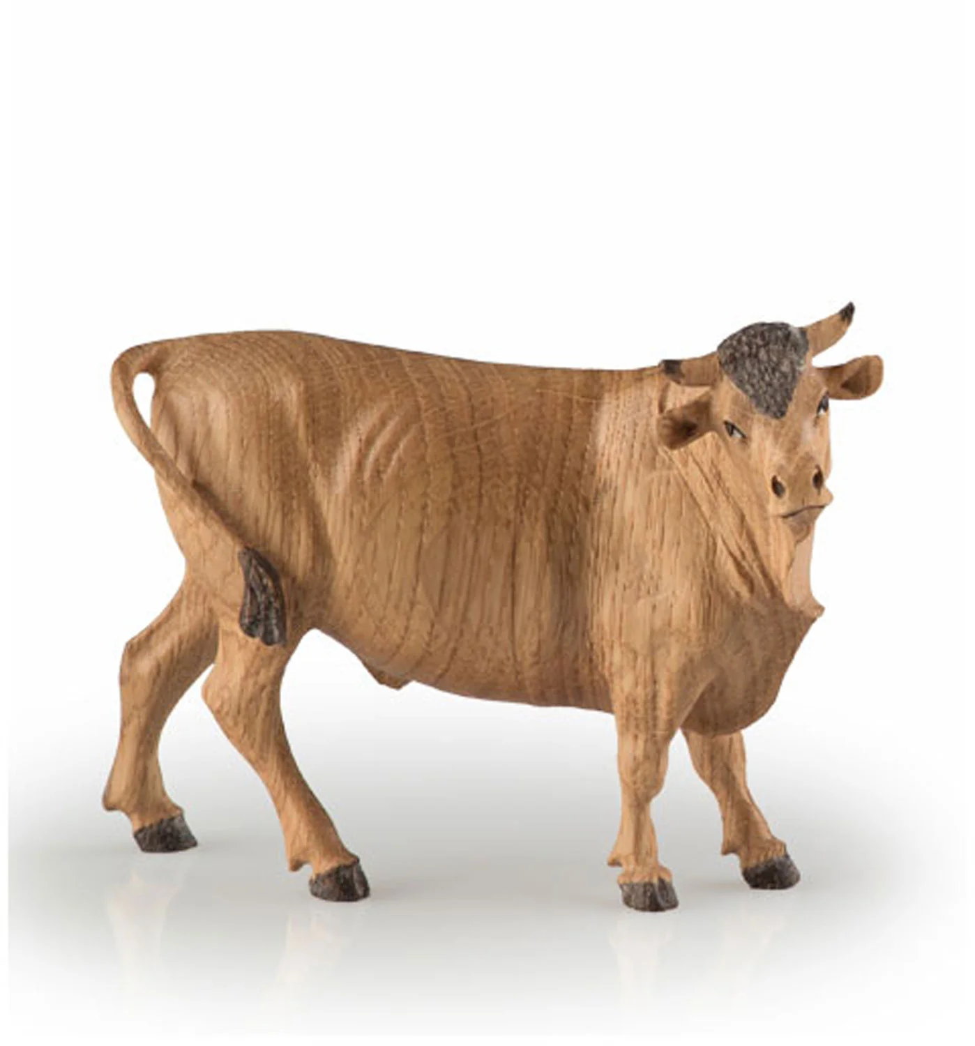 Carved wooden image. Standing ox in hardwood.