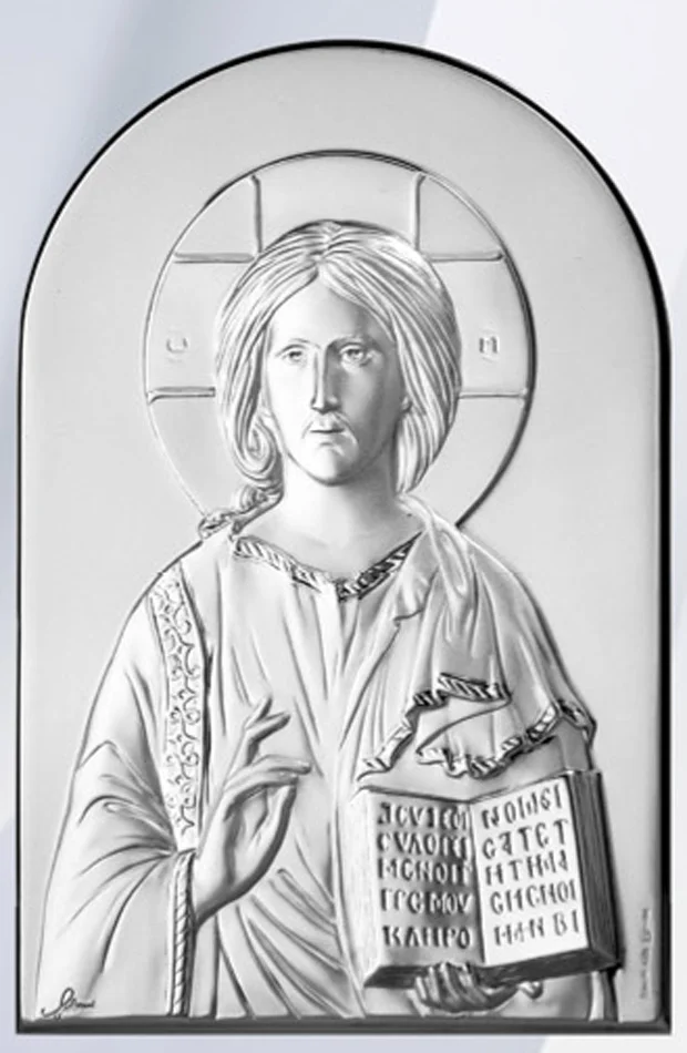 Religious altarpiece of the Pantocrator, made of silver on high quality wood. Available in different sizes.