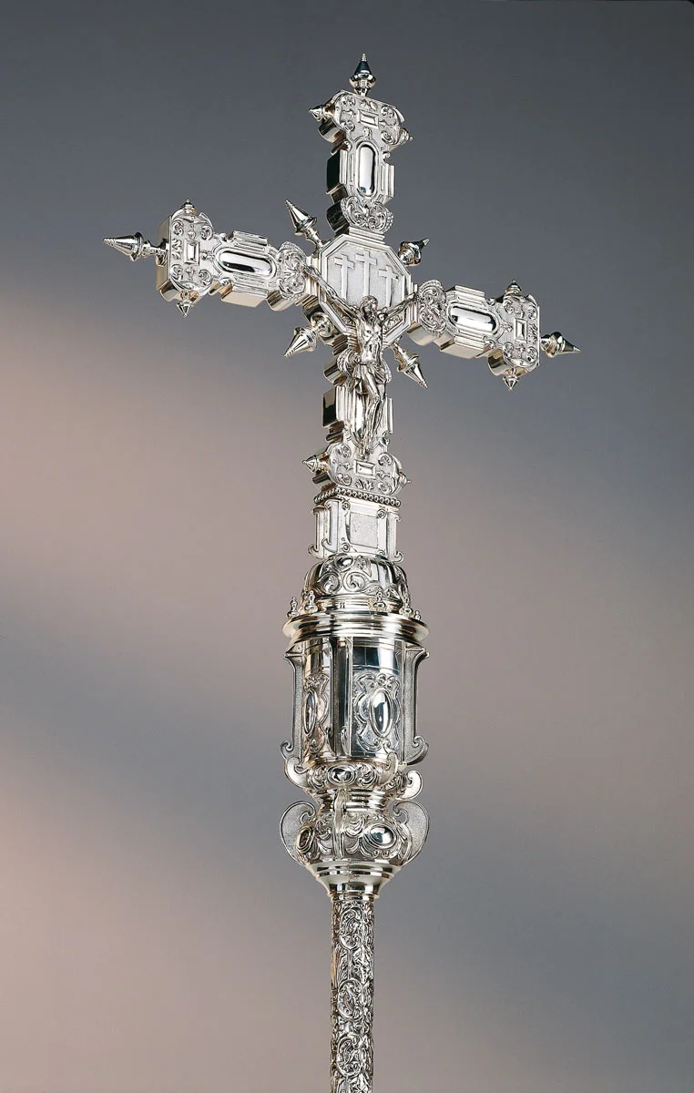 Processional Cross in brass fusion silver plated. It is possible to make this Processional Cross in 925 sterling silver, contact us.