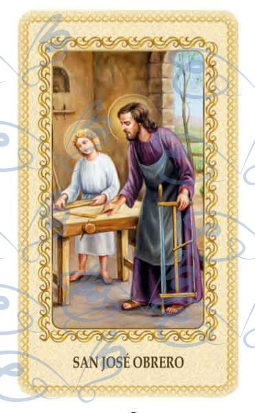 Elegant card of the Saint Joseph worker with prayer. Text in Spanish. Other languages on request, consult.
