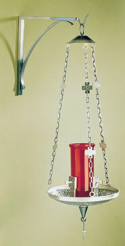 Sanctuary lamp in brass fusion polished. Includes support to install on the wall.