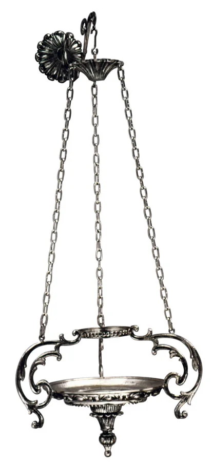 Spectacular Sanctuary lamp made in brass fusion, of great quality and exceptional finish. Glass 8-day for liquid wax not included.