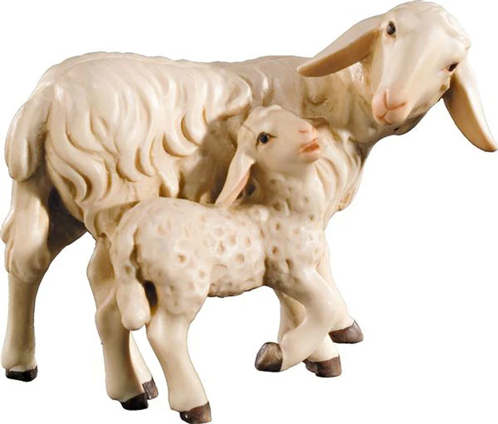 Sheep with lamb of great quality in noble woods. Normally in linden, maple or oak wood. Sculpture with a perfect finish.