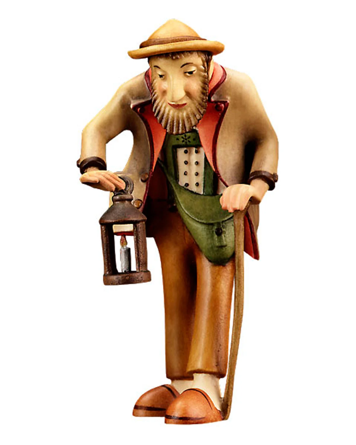 Carved wooden image. St. Joseph with stick and lantern in wood.