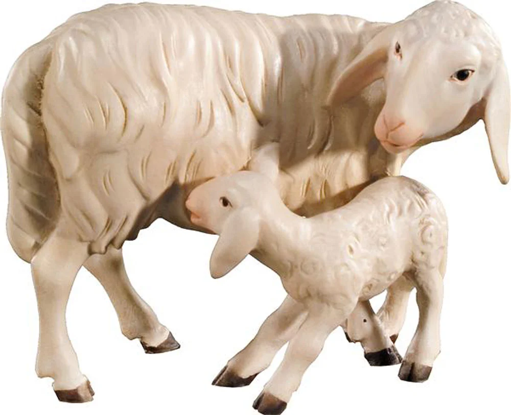 Standing lambs group (with base) of high quality in noble woods. Normally in linden, maple or oak wood. Sculpture with a perfect finish.