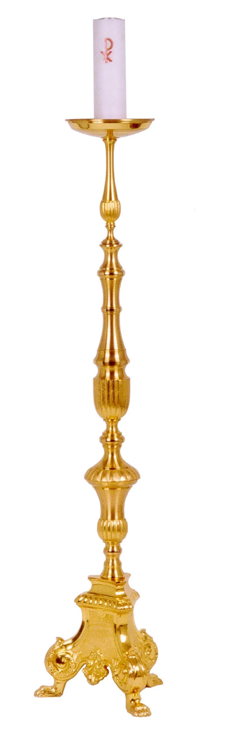 Elegante candelabro barroco, realizado artesanalmente de una calidad excepcional. Disponible en varios acabados.