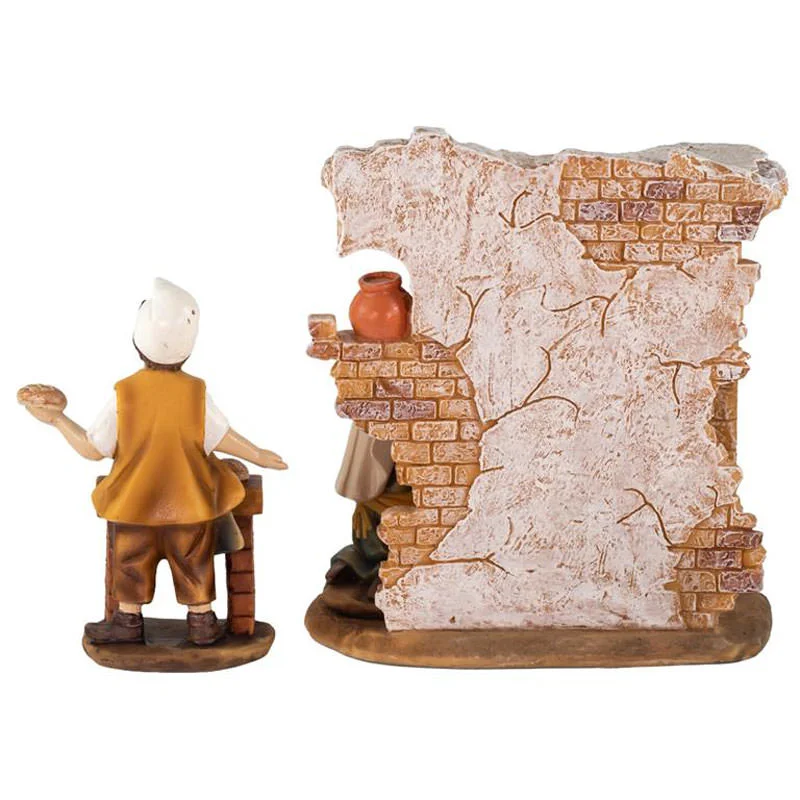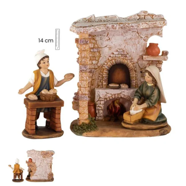 Conjunto de panaderos y horno, para pesebre de 14 cm., pintados de forma artesanal.