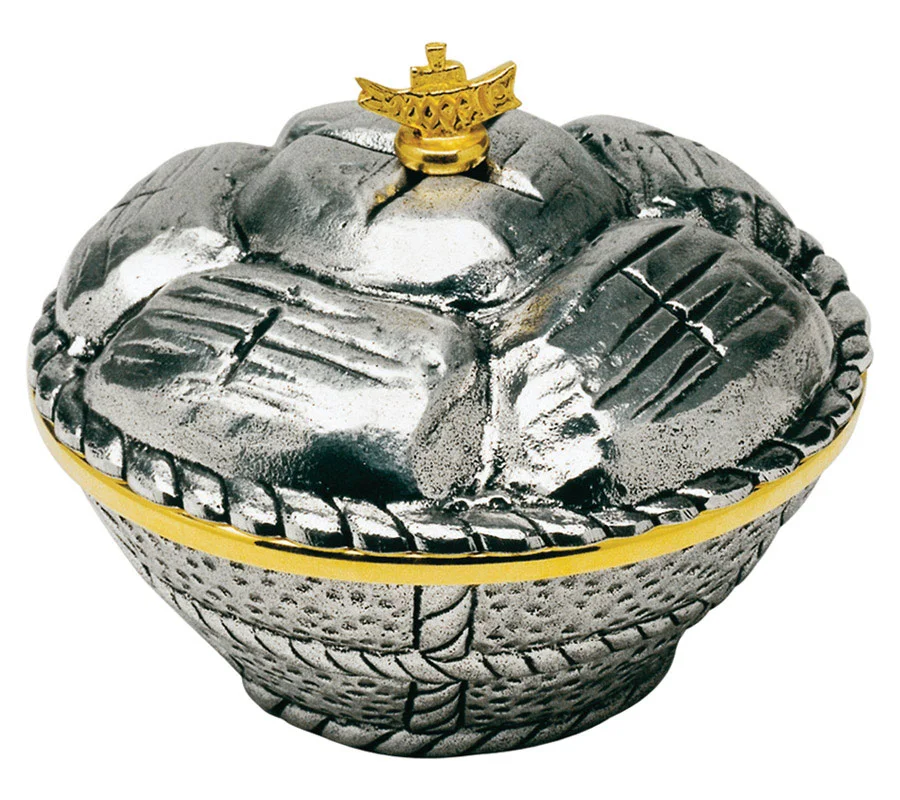 Precioso copón en fusión de latón de una calidad y acabados excepcionales. Diámetro de la copa: 12 cm.