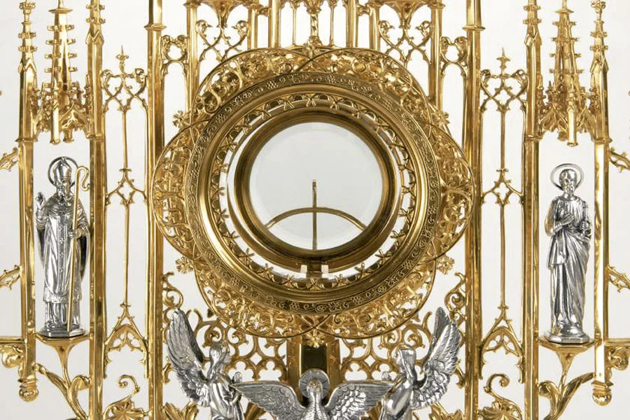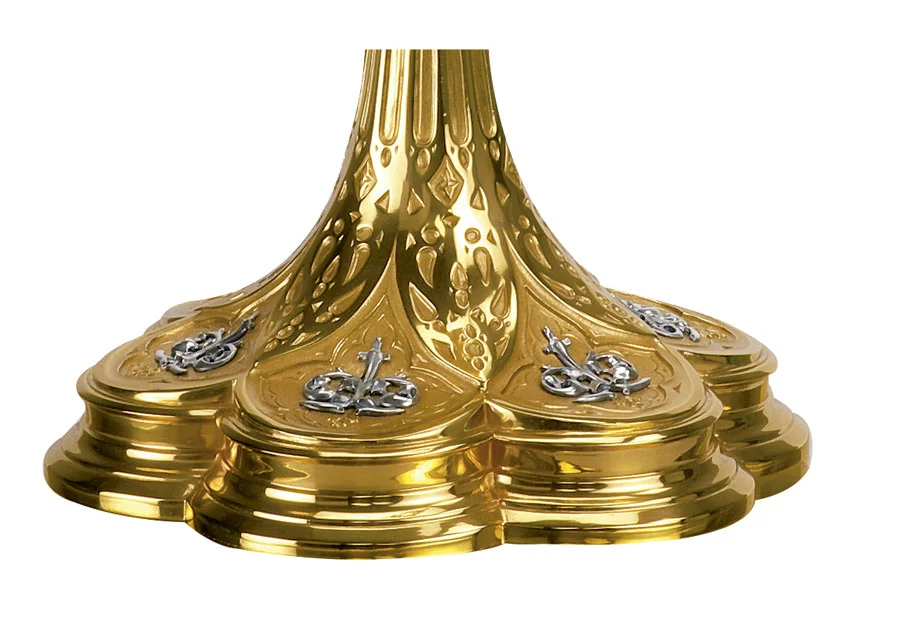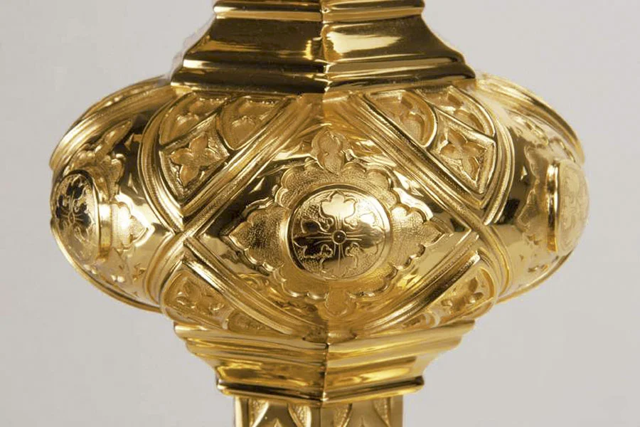Custodia de estilo gótico de una calidad excepcional, realizada en fusión de latón con baño de oro. Es posible realizar la custodia en plata de ley 925, consúltenos.