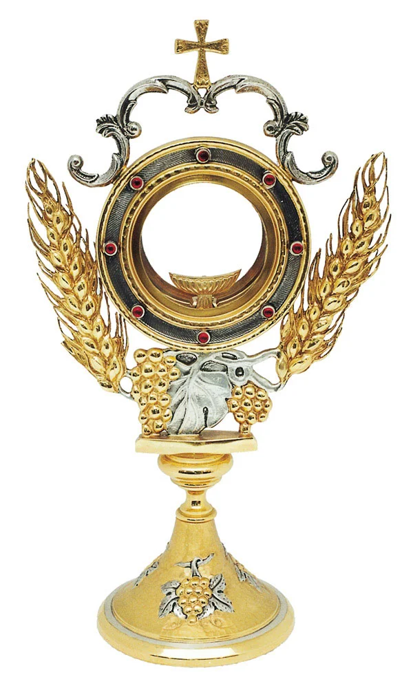 Custodia (ostensorio) en fusión de latón con motivo de la vid.