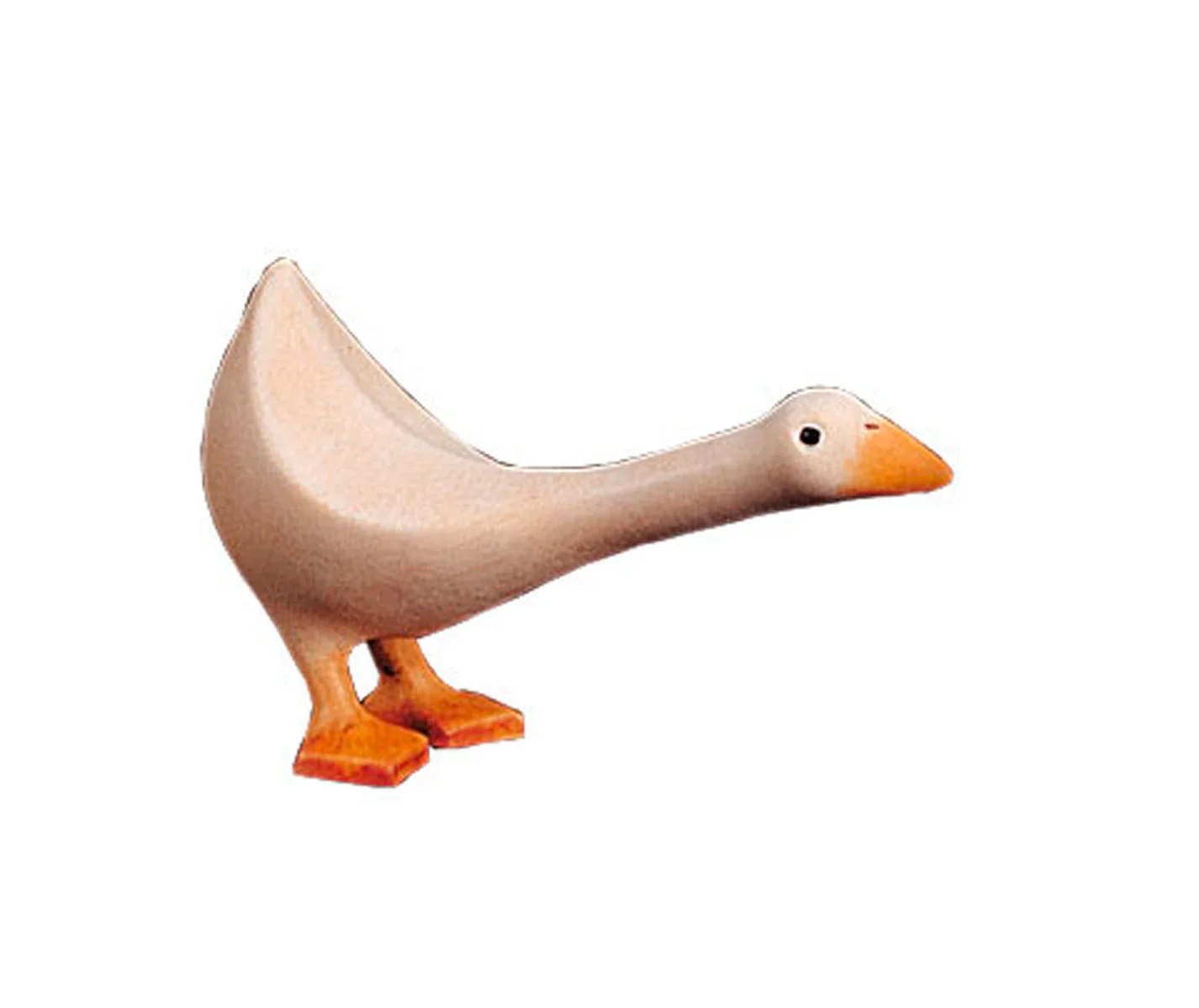 Imagen de madera tallada. Ganso adelante inclinado en maderas nobles.