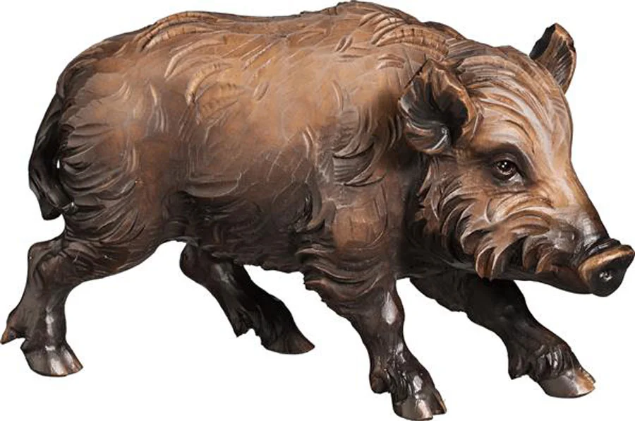 Jabalina en talla de madera natural.