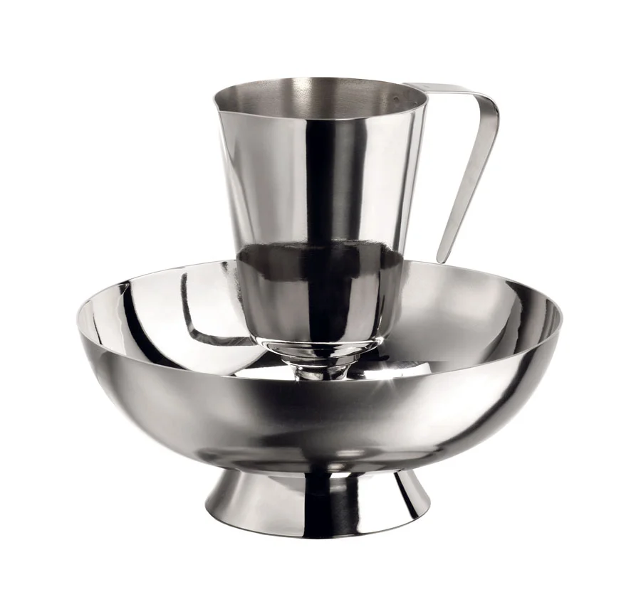 Jarra y plato (lavamanos), bellamente acabado en acero inoxidable.