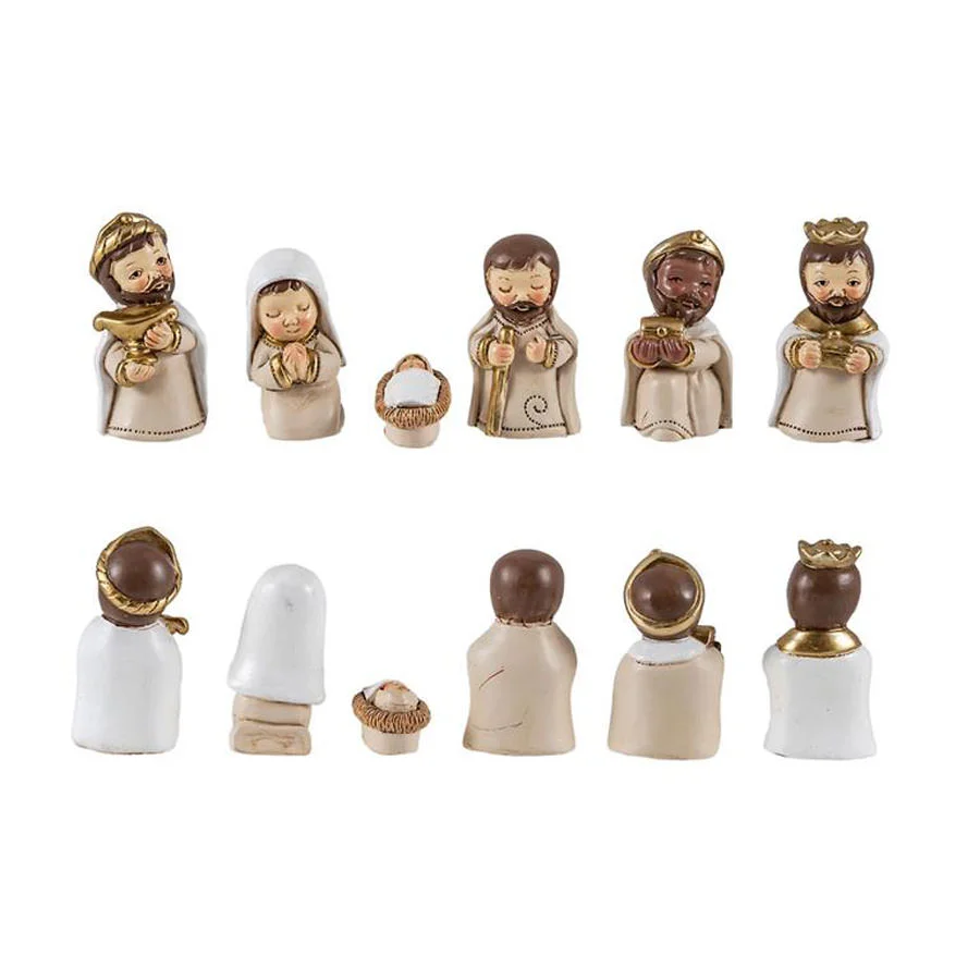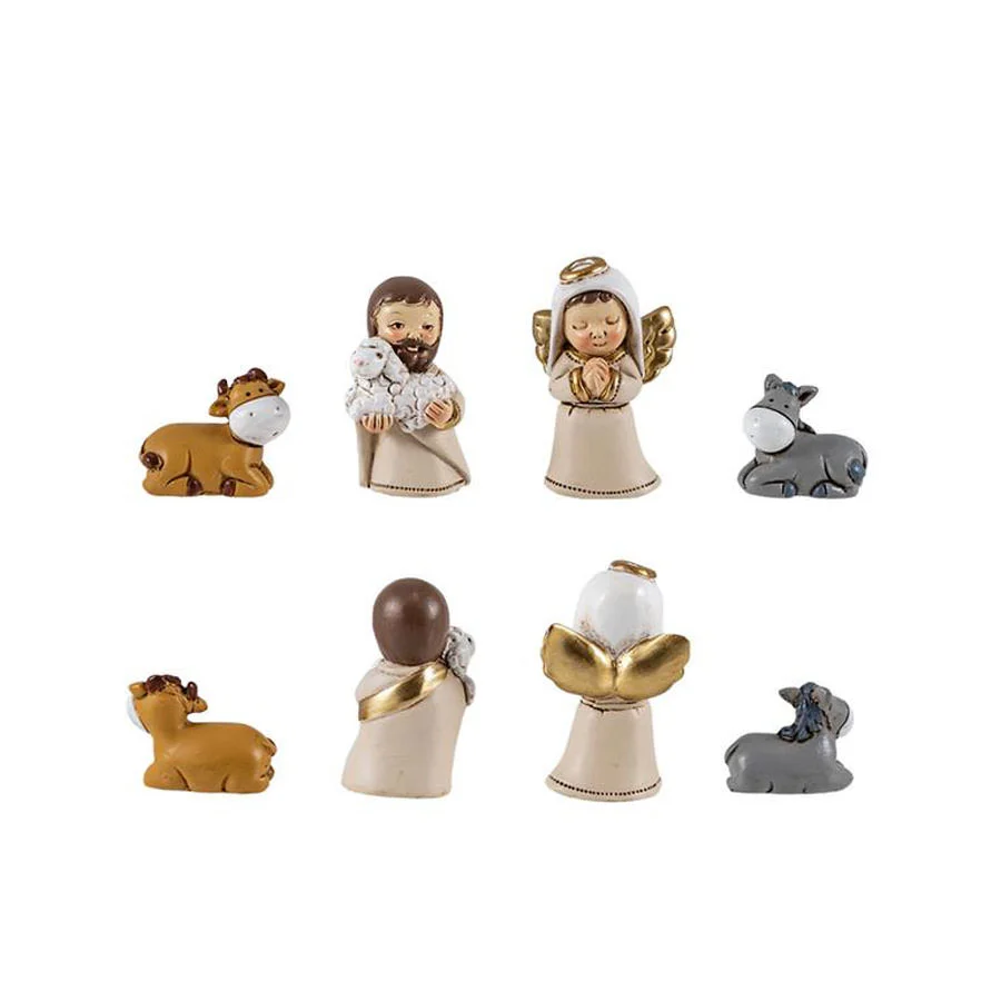 Precioso conjunto de Misterio infantil, 9 piezas, realizada en resina decorada.