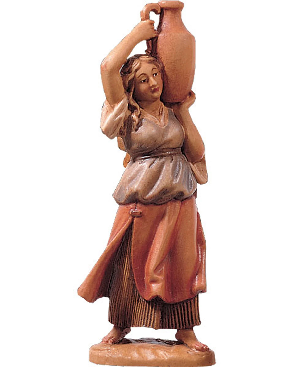 Imagen de madera tallada. Mujer con cantaro de agua al hombro en maderas nobles.