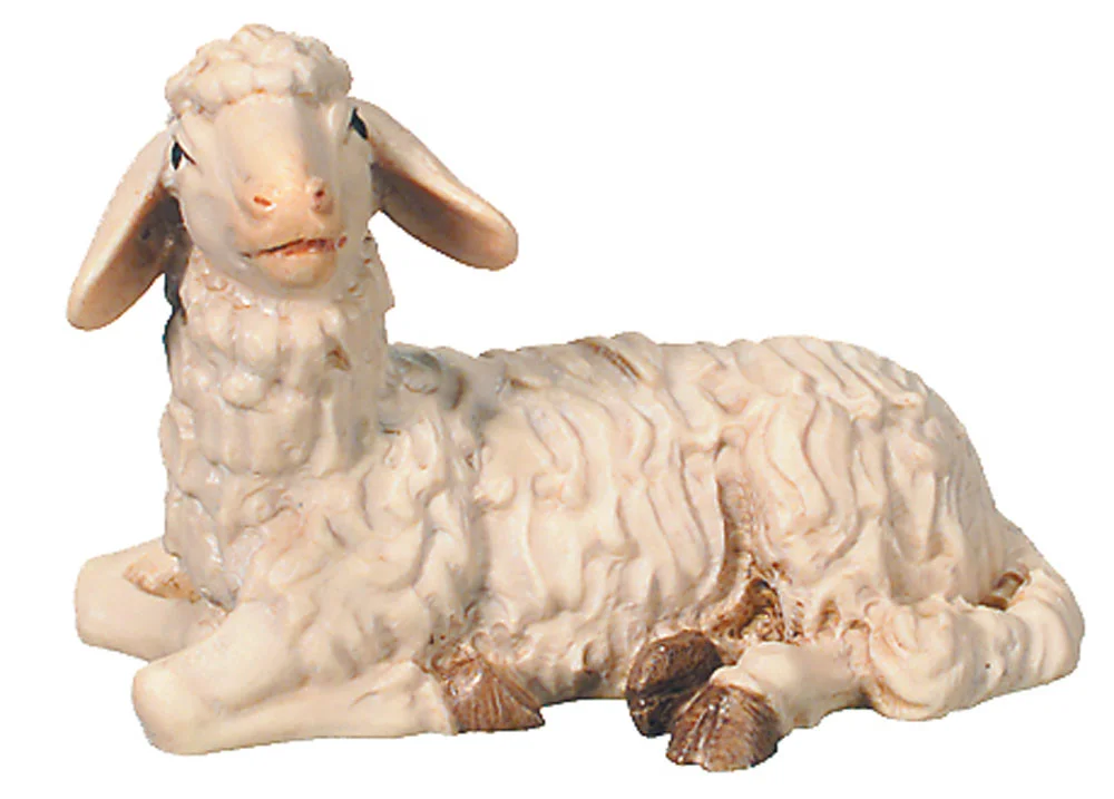 Oveja echada en talla de madera natural. Varios acabados disponibles.