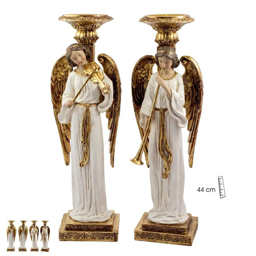Pareja de angeles para poner una vela decorativa, pintados de forma artesanal. Material resina.