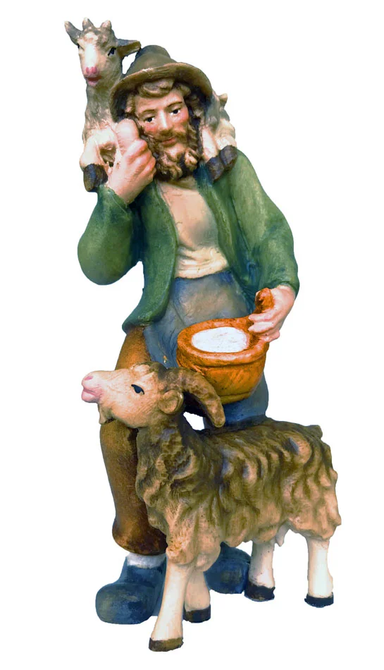 Pastor con carnero en talla de madera natural. Varios acabados disponibles.
