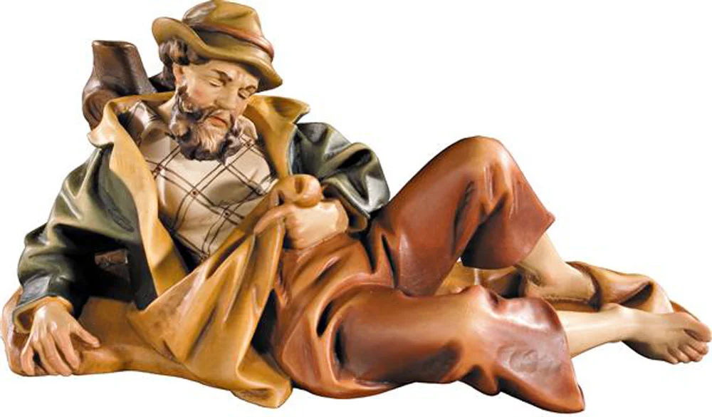Pastor durmiendo en talla de madera natural.