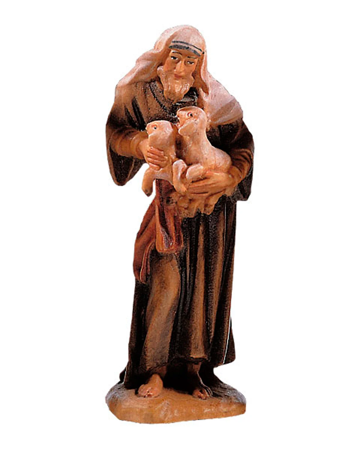Imagen de madera tallada. Pastor oriental con corderos en maderas nobles.