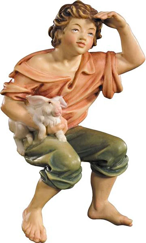 Pastor sentado con conejo de gran calidad en maderas nobles. Normalmente en madera de tilo, arce o roble. Escultura con un acabado perfecto.