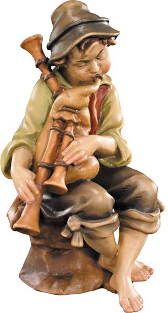 Pastor sentado con gaita de gran calidad en maderas nobles. Normalmente en madera de tilo, arce o roble. Escultura con un acabado perfecto.