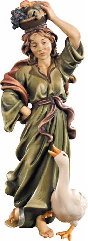 Pastora con ganso y frutas de gran calidad en maderas nobles. Normalmente en madera de tilo, arce o roble. Escultura con un acabado perfecto.