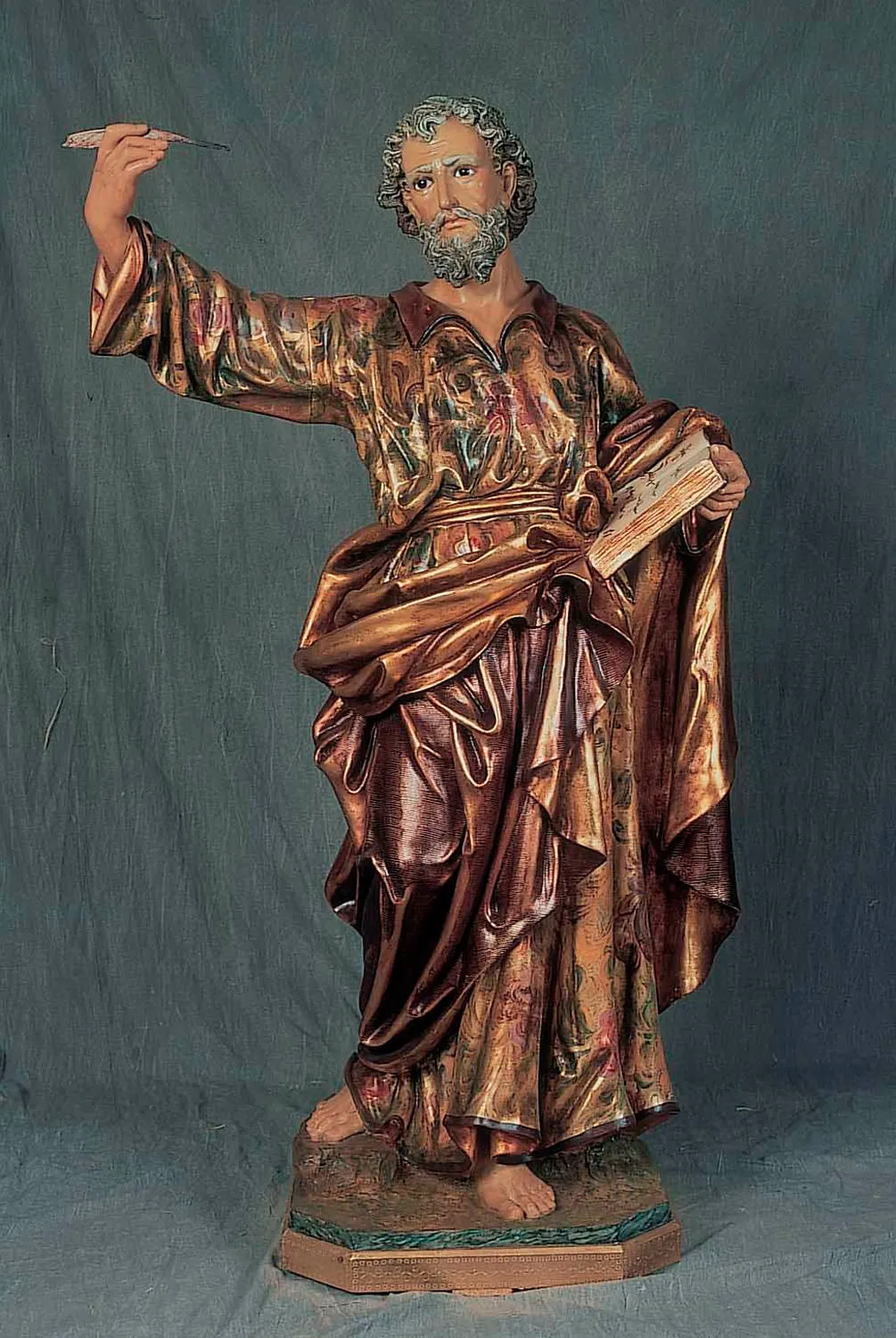 Esta imagen religiosa en madera destaca por su cuidada elaboración artesanal.