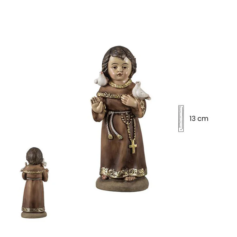 Esta imagen religiosa en resina destaca por su cuidada elaboración artesanal.