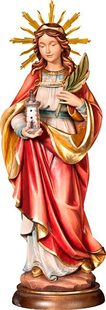Protectora contra tormentas y rayos, ejemplo de fortaleza cristiana. Patrona de Artilleros, mineros, arquitectos. Festividad: 4 de diciembre.