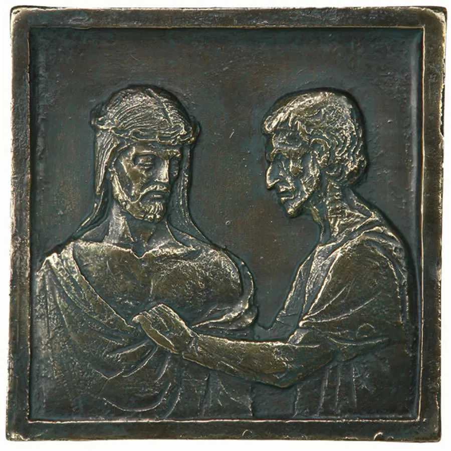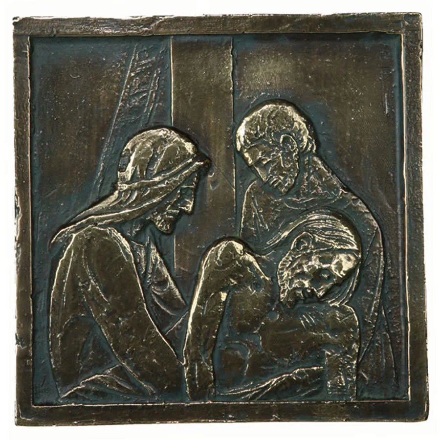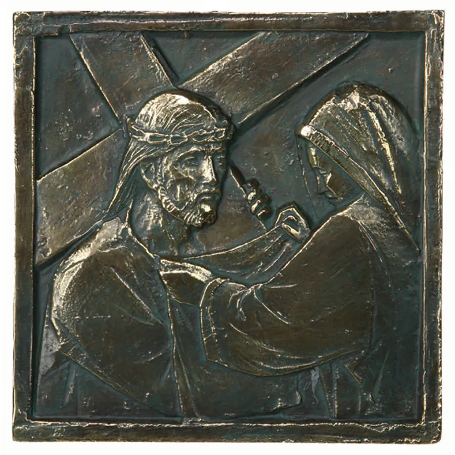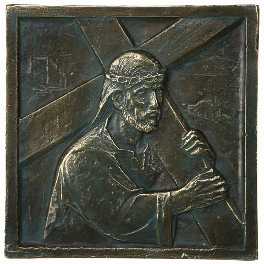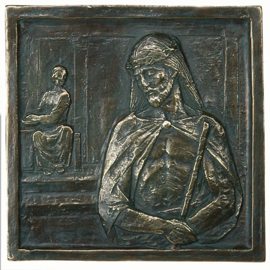 Via Crucis en relieve decorado a mano de forma artesanal. 14 Estaciones. Vía Crucis.