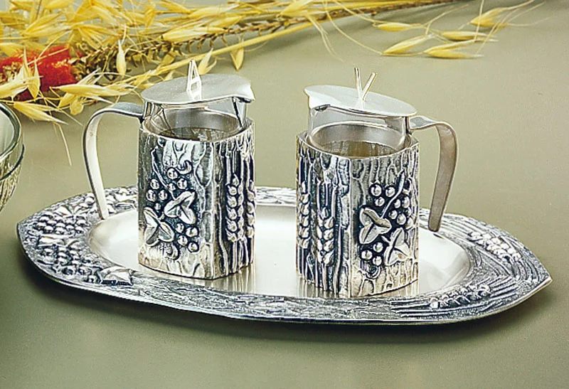 Juego de Agua y Vino. Altura botellas: 9 cm. Las botellas se introducen en cilindros para evitar posibles caidas.