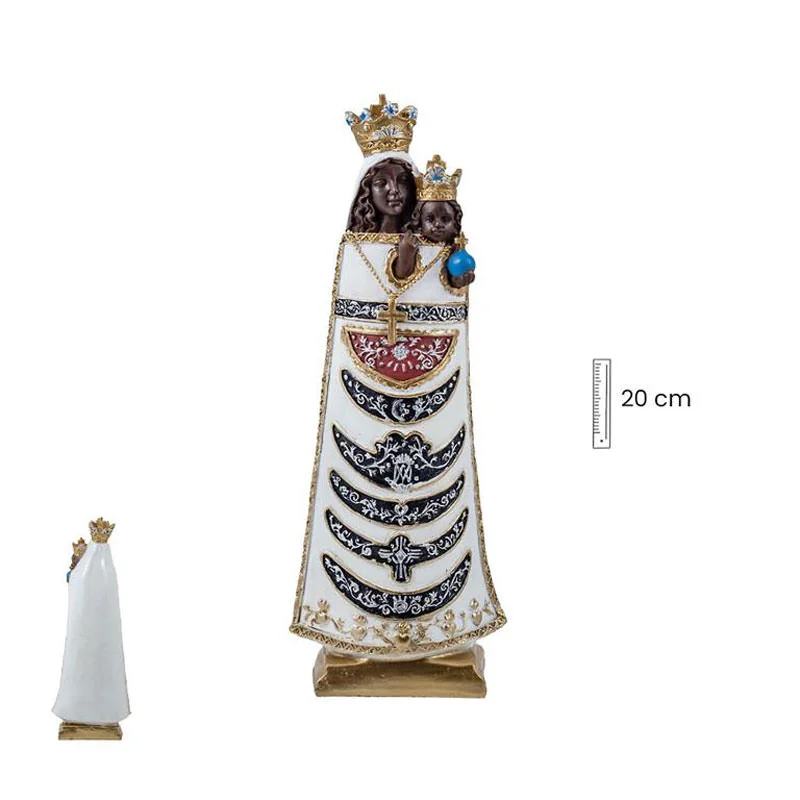 Escultura devocional realizada en resina destaca por su cuidada elaboración artesanal.