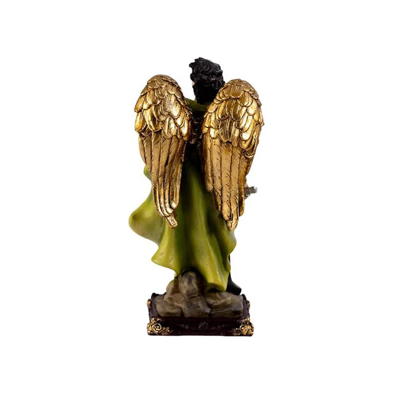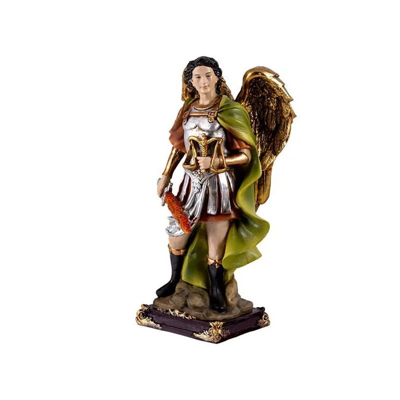 Escultura devocional realizada en resina destaca por su cuidada elaboración artesanal.